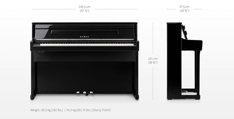The CA901's slimline cabinet adopts the modern design cues of Kawai's professional 'K' series upright pianos, including the Soft Fall fallboard. At just 47cm deep, it fits spaces where acoustic uprights live, while premium Ivory Touch and Ebony Touch keys provide the luxurious feel of the world's finest grands. This is an instrument designed to grace your home for decades.